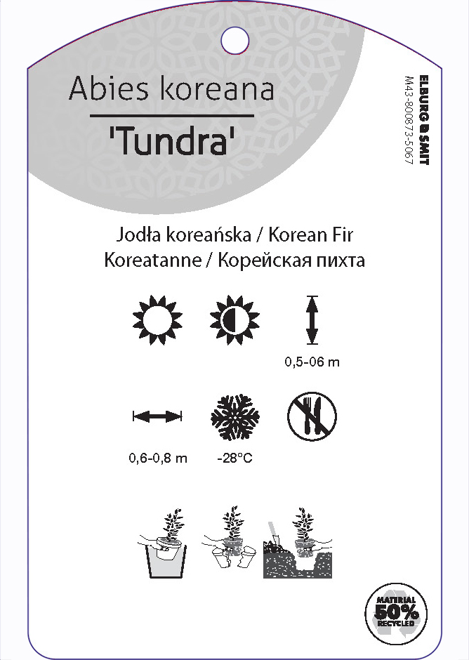Etykieta zawieszana z dziurką w rozmiarze 75×119 mm. Wykonana z polipropylenu o grubości 0,5 mm w 50% pochodzącego z recyklingu. Etykieta odporna na działanie czynników atmosferycznych. Całość dodatkowo zabezpieczona jest lakierem UV zapobiegającym utracie kolorów.