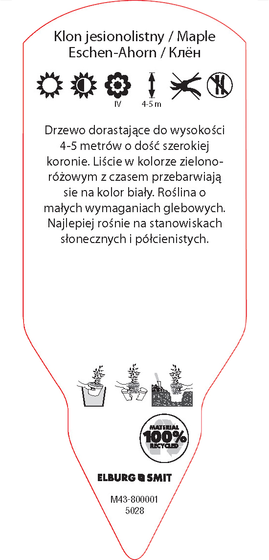 Etykieta wtykana w rozmiarze 58×145 mm. Wykonana z polistyrenu o grubości 0,6 mm w 100% pochodzącego z recyklingu. Etykieta odporna na działanie czynników atmosferycznych. Całość dodatkowo zabezpieczona jest lakierem UV zapobiegającym utracie kolorów.