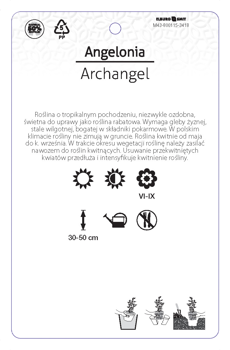 Etykieta zawieszana z gumką w rozmiarze 92×145 mm. Wykonana z polipropylenu o grubości 0,5 mm w 50% pochodzącego z recyklingu. Etykieta odporna na działanie czynników atmosferycznych. Całość dodatkowo zabezpieczona jest lakierem UV zapobiegającym utracie kolorów.