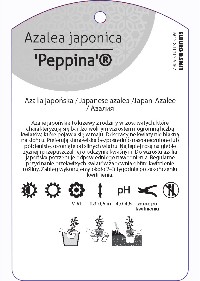 Etykieta zawieszana z gumką w rozmiarze 75×119 mm. Wykonana z polipropylenu o grubości 0,5 mm w 50% pochodzącego z recyklingu. Etykieta odporna na działanie czynników atmosferycznych. Całość dodatkowo zabezpieczona jest lakierem UV zapobiegającym utracie kolorów.