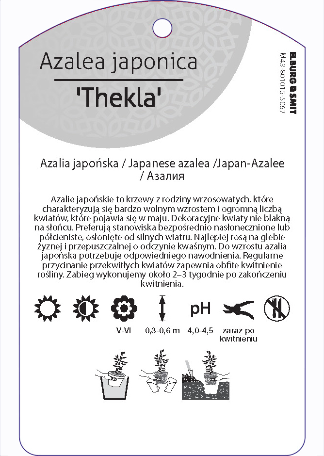 Etykieta zawieszana z gumką w rozmiarze 75×119 mm. Wykonana z polipropylenu o grubości 0,5 mm w 50% pochodzącego z recyklingu. Etykieta odporna na działanie czynników atmosferycznych. Całość dodatkowo zabezpieczona jest lakierem UV zapobiegającym utracie kolorów.