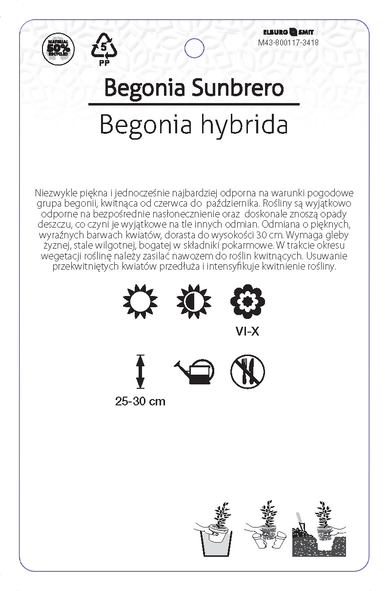 Etykieta zawieszana z gumką w rozmiarze 92×145 mm. Wykonana z polipropylenu o grubości 0,5 mm w 50% pochodzącego z recyklingu. Etykieta odporna na działanie czynników atmosferycznych. Całość dodatkowo zabezpieczona jest lakierem UV zapobiegającym utracie kolorów.