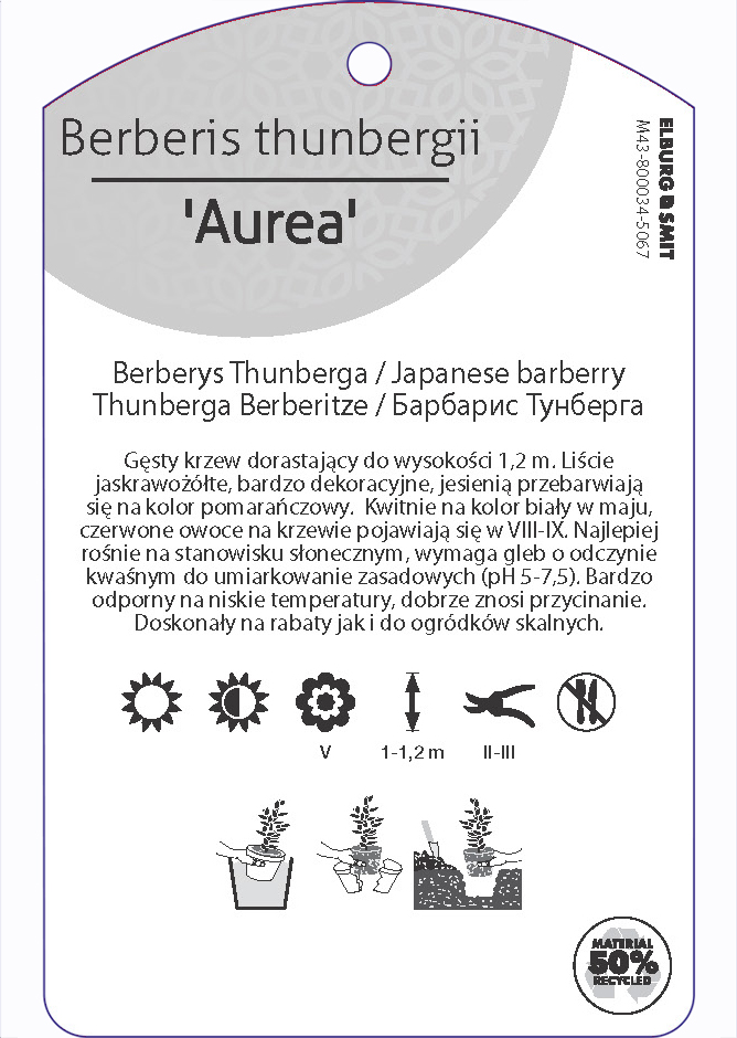 Etykieta zawieszana z gumką w rozmiarze 75×119 mm. Wykonana z polipropylenu o grubości 0,5 mm w 50% pochodzącego z recyklingu. Etykieta odporna na działanie czynników atmosferycznych. Całość dodatkowo zabezpieczona jest lakierem UV zapobiegającym utracie kolorów.