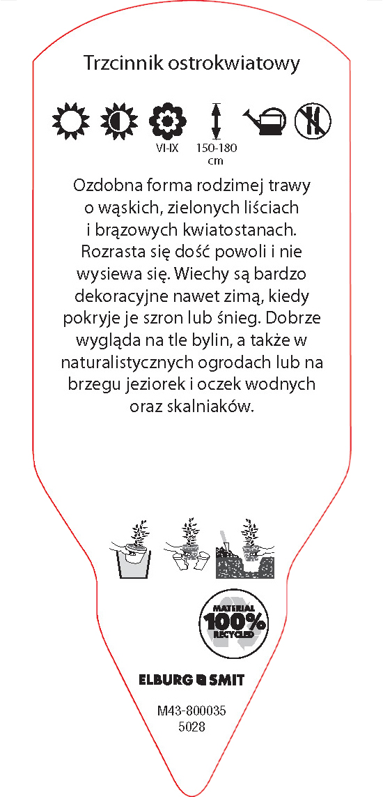 Etykieta wtykana w rozmiarze 58×145 mm. Wykonana z polistyrenu o grubości 0,6 mm w 100% pochodzącego z recyklingu. Etykieta odporna na działanie czynników atmosferycznych. Całość dodatkowo zabezpieczona jest lakierem UV zapobiegającym utracie kolorów.