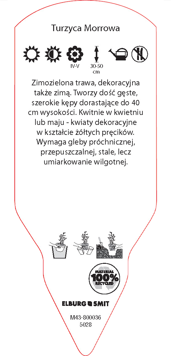 Etykieta wtykana w rozmiarze 58×145 mm. Wykonana z polistyrenu o grubości 0,6 mm w 100% pochodzącego z recyklingu. Etykieta odporna na działanie czynników atmosferycznych. Całość dodatkowo zabezpieczona jest lakierem UV zapobiegającym utracie kolorów.