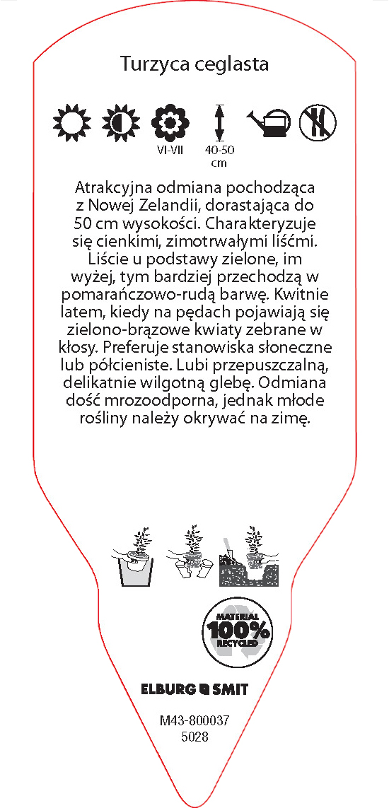 Etykieta wtykana w rozmiarze 58×145 mm. Wykonana z polistyrenu o grubości 0,6 mm w 100% pochodzącego z recyklingu. Etykieta odporna na działanie czynników atmosferycznych. Całość dodatkowo zabezpieczona jest lakierem UV zapobiegającym utracie kolorów.