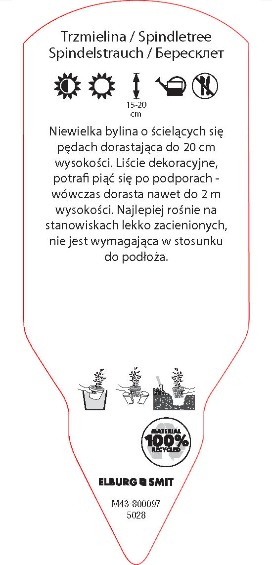 Etykieta wtykana w rozmiarze 58×145 mm. Wykonana z polistyrenu o grubości 0,6 mm w 100% pochodzącego z recyklingu. Etykieta odporna na działanie czynników atmosferycznych. Całość dodatkowo zabezpieczona jest lakierem UV zapobiegającym utracie kolorów.