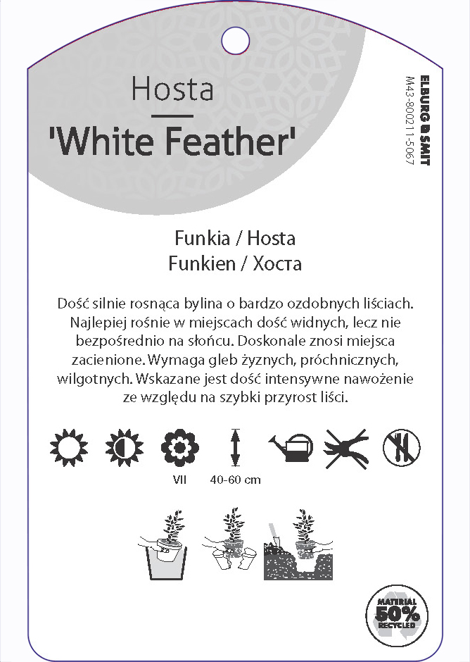 Etykieta zawieszana z dziurką w rozmiarze 75×119 mm. Wykonana z polipropylenu o grubości 0,5 mm w 50% pochodzącego z recyklingu. Etykieta odporna na działanie czynników atmosferycznych. Całość dodatkowo zabezpieczona jest lakierem UV zapobiegającym utracie kolorów.