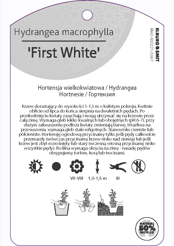 Hydrangea macrophylla 'First White’