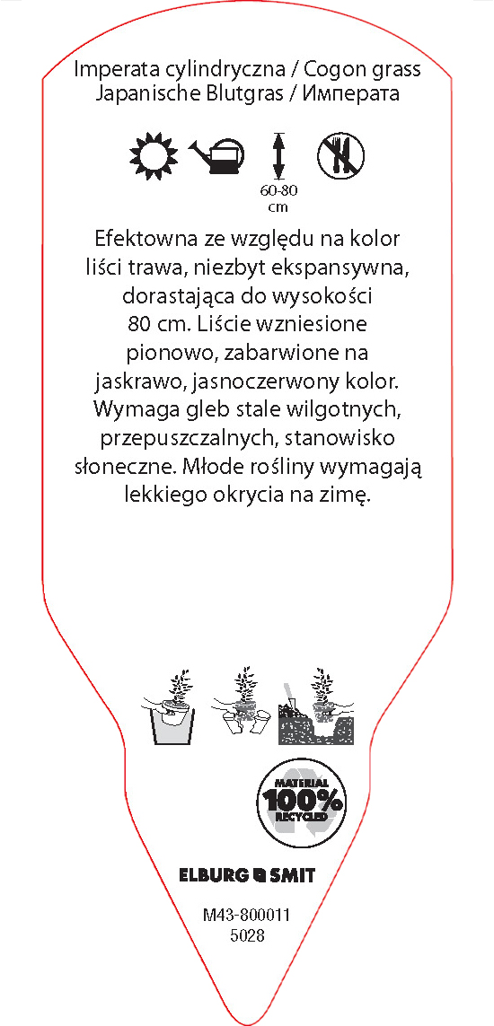 Etykieta wtykana w rozmiarze 58×145 mm. Wykonana z polistyrenu o grubości 0,6 mm w 100% pochodzącego z recyklingu. Etykieta odporna na działanie czynników atmosferycznych. Całość dodatkowo zabezpieczona jest lakierem UV zapobiegającym utracie kolorów.