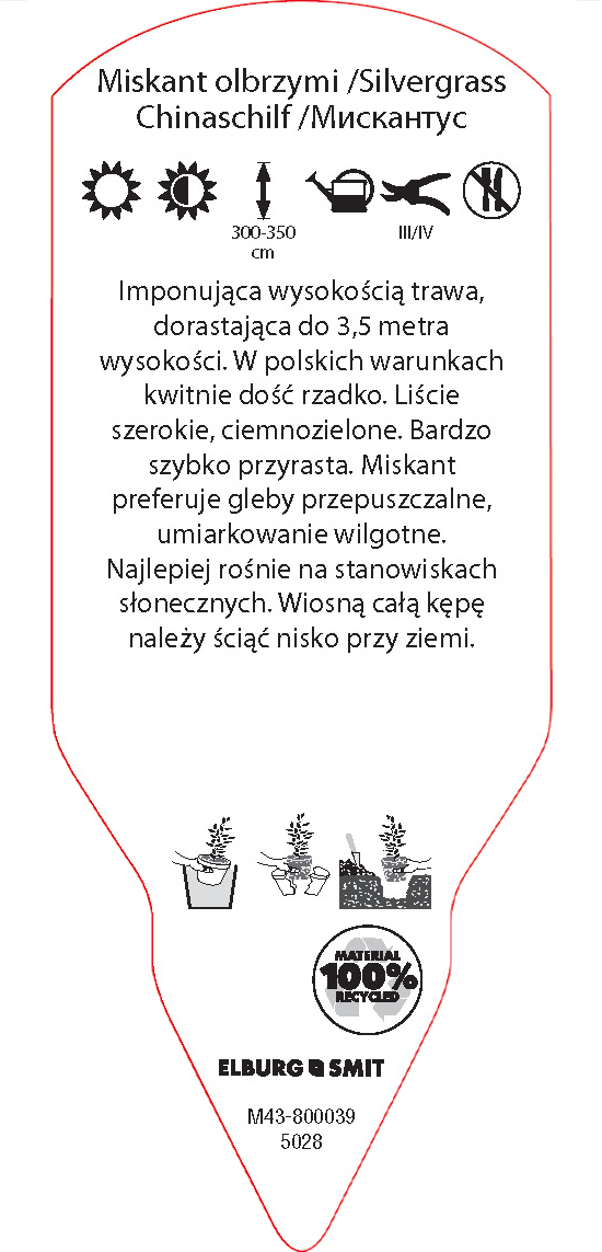 Etykieta wtykana w rozmiarze 58×145 mm. Wykonana z polistyrenu o grubości 0,6 mm w 100% pochodzącego z recyklingu. Etykieta odporna na działanie czynników atmosferycznych. Całość dodatkowo zabezpieczona jest lakierem UV zapobiegającym utracie kolorów.