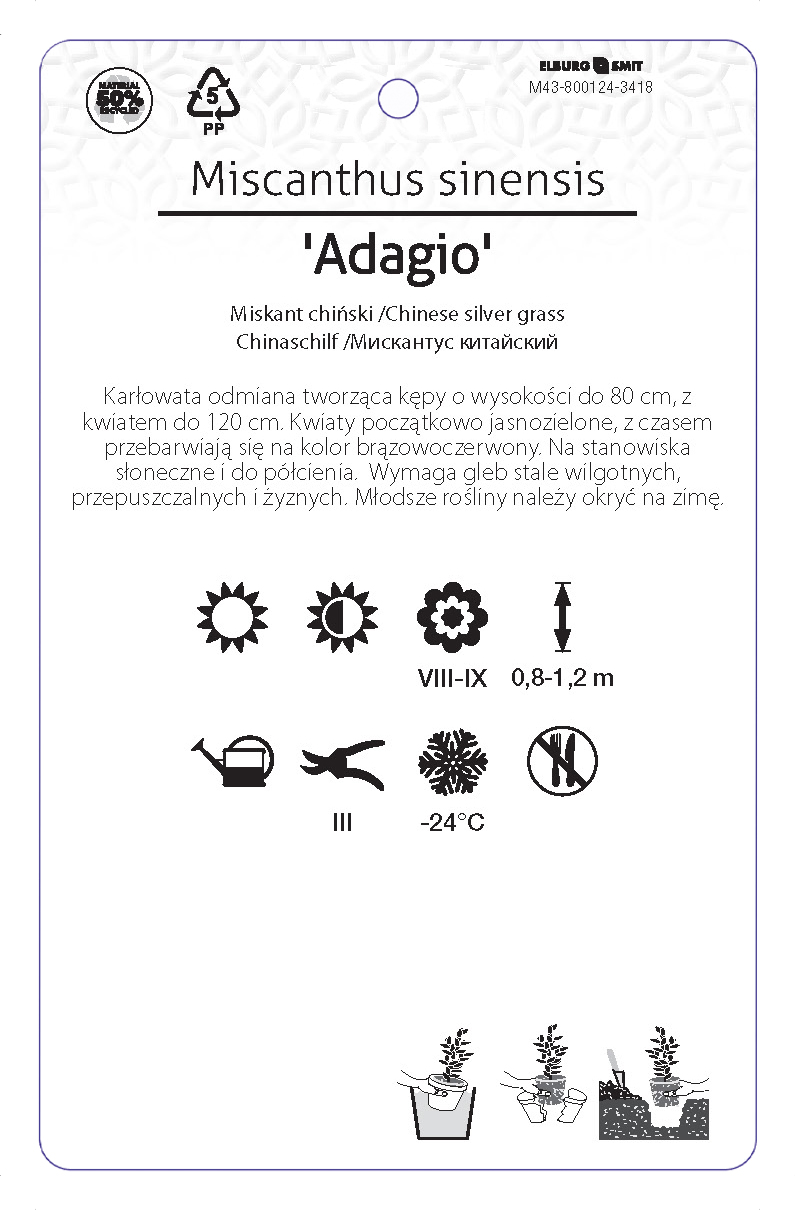 Etykieta zawieszana z gumką w rozmiarze 92×145 mm. Wykonana z polipropylenu o grubości 0,5 mm w 50% pochodzącego z recyklingu. Etykieta odporna na działanie czynników atmosferycznych. Całość dodatkowo zabezpieczona jest lakierem UV zapobiegającym utracie kolorów.