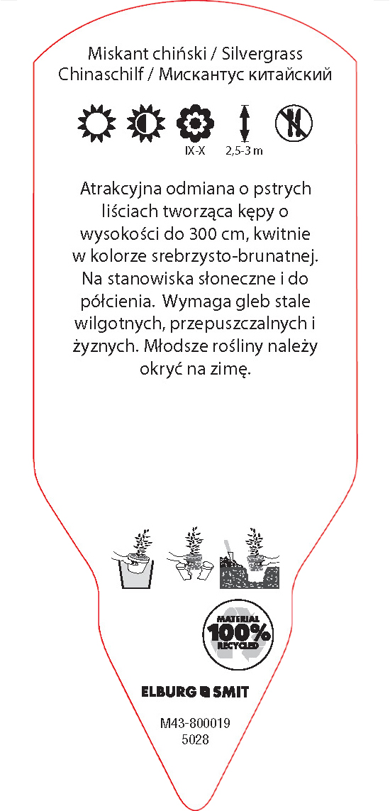 Etykieta wtykana w rozmiarze 58×145 mm. Wykonana z polistyrenu o grubości 0,6 mm w 100% pochodzącego z recyklingu. Etykieta odporna na działanie czynników atmosferycznych. Całość dodatkowo zabezpieczona jest lakierem UV zapobiegającym utracie kolorów.