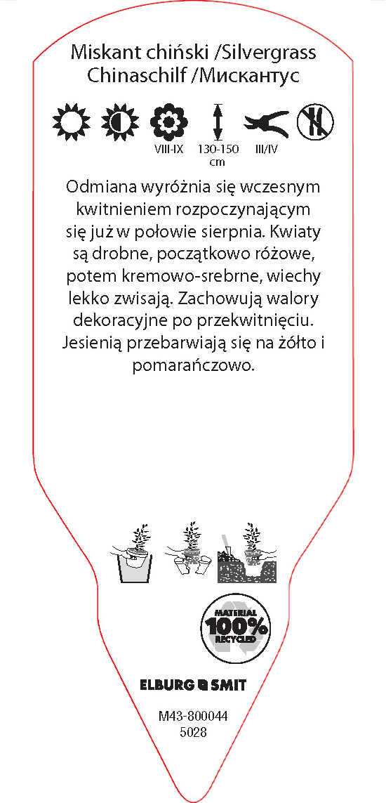 Etykieta wtykana w rozmiarze 58×145 mm. Wykonana z polistyrenu o grubości 0,6 mm w 100% pochodzącego z recyklingu. Etykieta odporna na działanie czynników atmosferycznych. Całość dodatkowo zabezpieczona jest lakierem UV zapobiegającym utracie kolorów.
