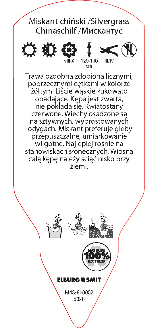 Etykieta wtykana w rozmiarze 58×145 mm. Wykonana z polistyrenu o grubości 0,6 mm w 100% pochodzącego z recyklingu. Etykieta odporna na działanie czynników atmosferycznych. Całość dodatkowo zabezpieczona jest lakierem UV zapobiegającym utracie kolorów.