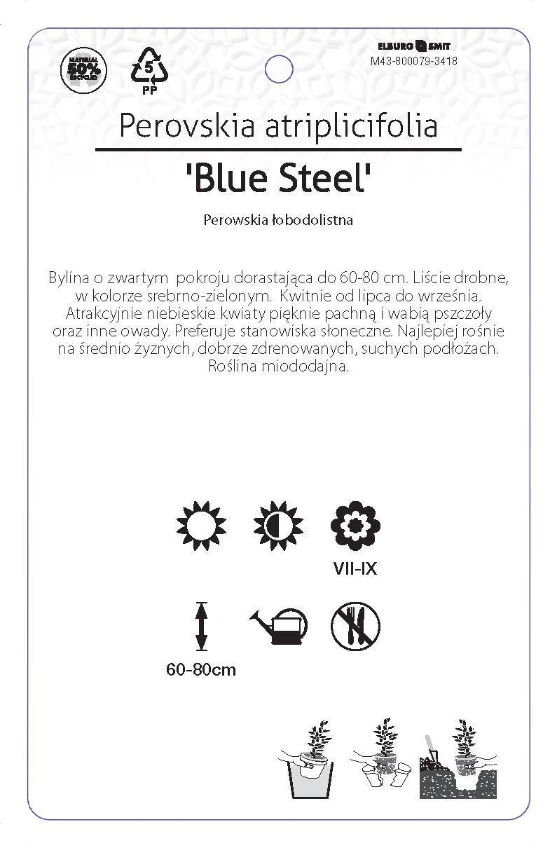 Etykieta zawieszana z gumką w rozmiarze 92×145 mm. Wykonana z polipropylenu o grubości 0,5 mm w 50% pochodzącego z recyklingu. Etykieta odporna na działanie czynników atmosferycznych. Całość dodatkowo zabezpieczona jest lakierem UV zapobiegającym utracie kolorów.