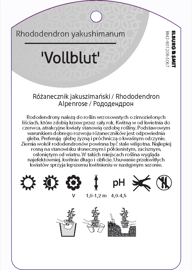 Etykieta zawieszana z gumką w rozmiarze 75×119 mm. Wykonana z polipropylenu o grubości 0,5 mm w 50% pochodzącego z recyklingu. Etykieta odporna na działanie czynników atmosferycznych. Całość dodatkowo zabezpieczona jest lakierem UV zapobiegającym utracie kolorów.