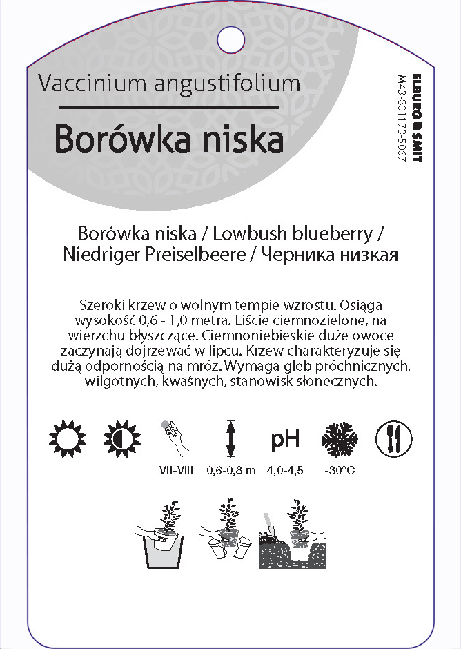 Etykieta zawieszana z gumką w rozmiarze 75×119 mm. Wykonana z polipropylenu o grubości 0,5 mm w 50% pochodzącego z recyklingu. Etykieta odporna na działanie czynników atmosferycznych. Całość dodatkowo zabezpieczona jest lakierem UV zapobiegającym utracie kolorów.