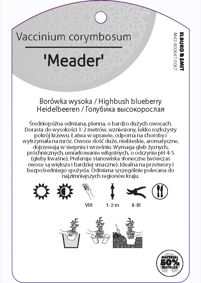 Etykieta zawieszana z gumką w rozmiarze 75×119 mm. Wykonana z polipropylenu o grubości 0,5 mm w 50% pochodzącego z recyklingu. Etykieta odporna na działanie czynników atmosferycznych. Całość dodatkowo zabezpieczona jest lakierem UV zapobiegającym utracie kolorów.