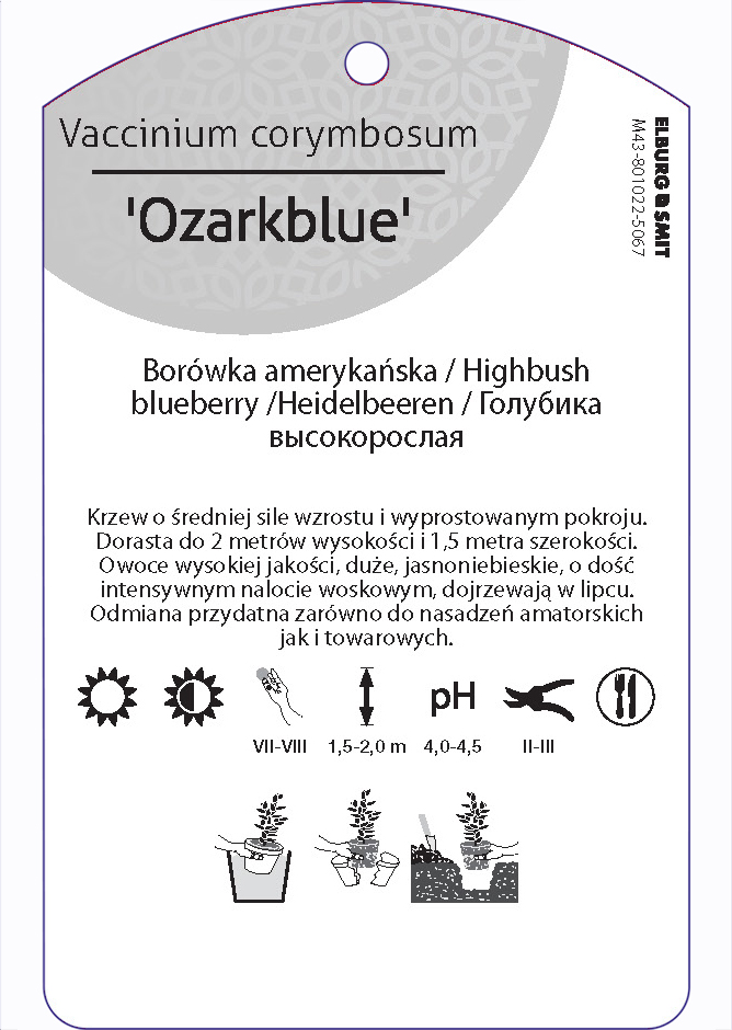 Etykieta zawieszana z gumką w rozmiarze 75×119 mm. Wykonana z polipropylenu o grubości 0,5 mm w 50% pochodzącego z recyklingu. Etykieta odporna na działanie czynników atmosferycznych. Całość dodatkowo zabezpieczona jest lakierem UV zapobiegającym utracie kolorów.